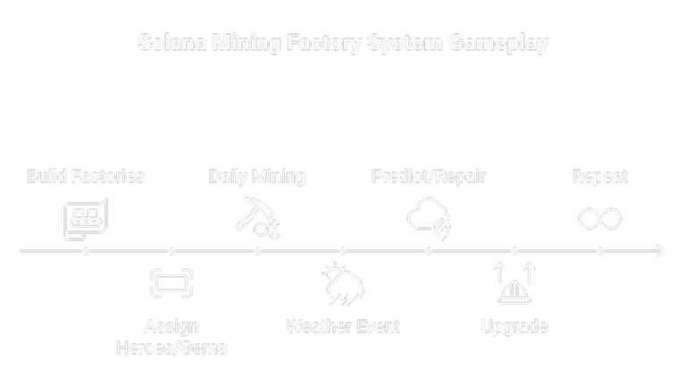 To mine SOL every day in ClipsEra, players construct and run Mining Factories with $USDT. Each factory can be enhanced by assigning Heroes and Gems, boosting efficiency and yield. Additionally, players must use ECS tokens for repairs and Prediction Stations to protect against weather-related damage. It is possible to construct up to four factories, each with its own distinct risk-reward patterns, ranging from high-stakes exponential growth to consistent linear gains. Gems and Characters amplify mining output, restore HP, and add strategic depth, while random weather events like Rain, Hail, Floods, or Quakes influence yield and visuals daily. By predicting weather, upgrading factories, and maintaining repairs, players progress through ten factory levels, balancing strategy, risk, and reward in a dynamic, evolving economy powered by $ECS, SOL, and USDT.